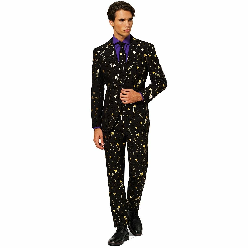 Sparkling style. Put on a stunning show at your next get-together with the help of this men’s Fancy Fireworks novelty suit and tie set from OppoSuits.